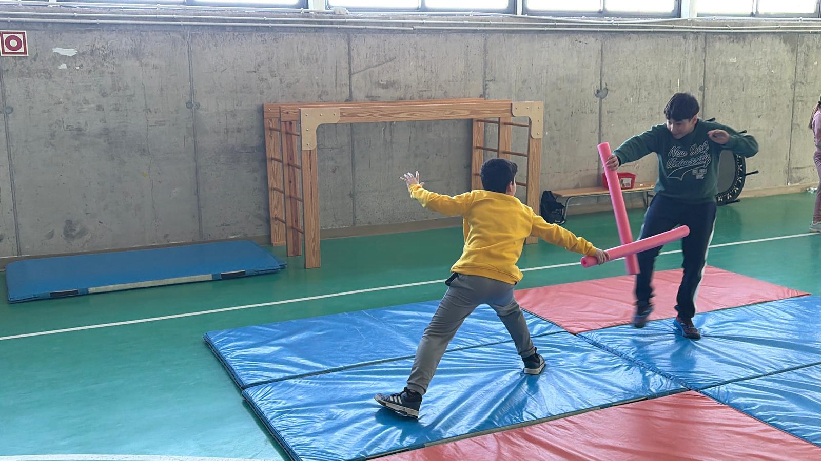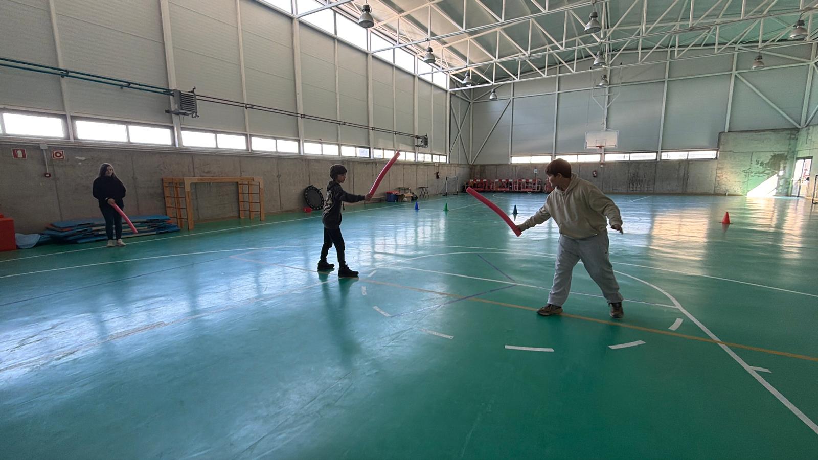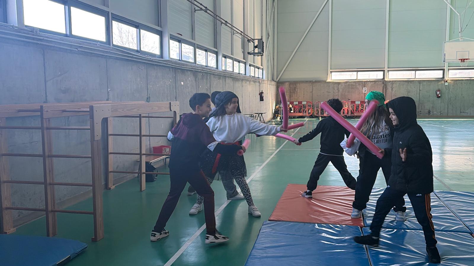 Esgrima escénica. Nuestros chicos de tercer ciclo de primaria disfrutando de la actividad realizada en P.E.